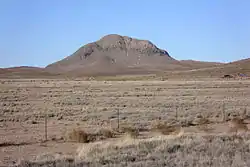 The town of Nutt was founded in 1881 as a depot and water station on the Atchison, Topeka and Santa Fe Railway and was named after Colonel Henry Clay Nutt who served on their board of directors, and was instrumental in getting enabling legislation through the New Mexico Territorial Legislature for the southern spur of the railway.[4][5] Wagon trains left Nutt for the mining communities in the Black Range until the Santa Fe ran a spur line up to Lake Valley in 1884.[6] After the spur was built, Nutt quickly declined. Its history as a town after 1884 is rather obscure. It has referred to itself as being the Middle of Nowhere.[7][8] Its only claim to fame came in 1892 when Tom Ketchum aka "Black Jack" and his brother Sam learned that an Atchison, Topeka and Santa Fe train was en route to Deming with a large payroll. The gang stopped the train just outside Nutt, holding it up at gunpoint, and made off with about $20,000.