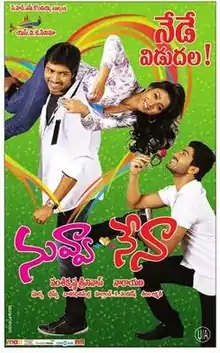 Nuvva Nena (transl. You or me) is a 2012 Telugu-language romantic comedy film directed by debutante Pendyala Veera Venkata Sathya Narayana and produced by Vamsi Krishna under SVK Cinema banner. The film stars Shriya Saran, Allari Naresh, Sharvanand, and Vimala Raman in lead roles with Brahmanandam, Ali, Jeeva, Kovai Sarala, Srinivasa Reddy, and Narsing Yadav appearing in other significant roles.[4] Bheems Ceciroleo composed the film's soundtrack with Mani Sharma providing the background score for the film. It is based on Hindi film Deewana Mastana.