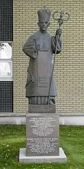 Statue of Nykyta Budka on the grounds of St. Josaphat Cathedral in Edmonton, Alberta