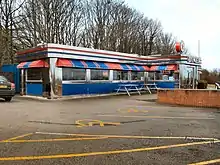 The OK Diner is a privately owned roadside restaurant chain in the United Kingdom. The restaurants have a retro, 1950s-style American diner theme with popular 1950s music, chequerboard flooring, booth seating, plenty of chrome details and 1950s memorabilia on the walls.[1][2]
