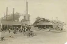 The smelter operated effectively though intermittently at first until all the flux and carrying arrangements were finalised. Tenders were called for the monthly carriage of 400 long tons (410 t) of matte (impure product of smelting) and ore, and back loading of 200 long tons (200 t) of coke and stores from Mungana. Tenders were also called for carrying 10 long tons (10 t) of limestone daily for 12 months. Abdul Wade, a shareholder of the company, obtained the contract for carriage to Mungana for which he used approximately 400 camels. They proved expensive, caused labour difficulties with the unions and were susceptible to the local poison bush. As a result, ten wood-burning traction engines were purchased by the company for transport to and from Mungana.[1][2]