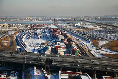 The yard was built by the Lehigh Valley Railroad and opened 1903. After construction of the Upper Bay Bridge in 1929 vast amounts of landfill were used to raise the yard to accommodate the new grade.[1] It became part of the Consolidated Rail Corporation (Conrail) in 1976, and in 1981 Conrail greatly expanded it.[2] Currently it is jointly owned as part of North Jersey Shared Assets Area by the Norfolk Southern Railway and CSX, which took over Conrail operations in 1999.[3][4] It is a support yard for the Port of New York and New Jersey ExpressRail system.