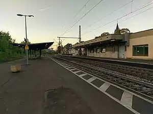 Oberlahnstein station is, along with Niederlahnstein and Friedrichssegen, one of three stations in the town of Lahnstein in the German state of Rhineland-Palatinate. It is a through station with 3 platform tracks on the East Rhine Railway (German: Rechte Rheinstrecke) and is located in the Oberlahnstein district. The adjacent former freight depot is now a brownfield site.