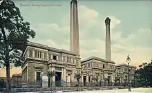 New projects include the construction of a new tower and tunnel in the river (finished in 1913), new purification plants in Palermo, new depots in Caballito and Villa Devoto (opened in 1915 and 1917, respectively), the expansion off the main drinking water distributors, the construction of a new sewer, among other works. When the World War I began, Obras Sanitarias had already began works in Buenos Aires and other cities. As a results, works were affected but not interrupted, with materials provided by the Recoleta workshop.[3]