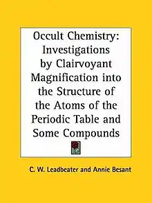 Occult Chemistry: Investigations by Clairvoyant Magnification into the Structure of the Atoms of the Periodic Table and Some Compounds (originally subtitled A Series of Clairvoyant Observations on the Chemical Elements) is a book written by Annie Besant and C.W. Leadbeater, who were both members of the Theosophical Society based in Adyar, India. Besant was at the time the President of the Society having succeeded Henry Olcott after his death in 1907.