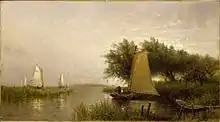 Sinepuxent Inlet, a navigable waterway through the barrier island during the colonial era, was located just south of the Assateague Island National Seashore day-use area. In September 1698 French pirate Canoot seized a Philadelphia-based sloop "as he was coming out of Cinnepuxon Inlet."[3] The Inlet was closed in a hurricane in 1818,[4] and was filled in by sand in 1860.[2] Sinepuxent was a once-thriving community on the mainland about a half mile north of the Verrazano Bridge, also destroyed in the same hurricane.