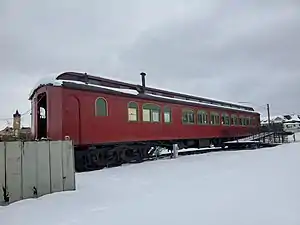 The renovated Northern Pacific passenger car on display next to the depot.