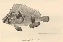 - ↑ Christopher Scharpf & Kenneth J. Lazara, eds. (10 March 2022). "Order Perciformes (Part 10): Suborder Scorpaenoidei: Families Apistidae, Tetrarogidae, Synanceiidae, Aploacrinidae, Perryenidae, Eschmeyeridae, Pataceidae, Gnathanacanthidae, Congiopodidae and Zanclorhynchidae". The ETYFish Project Fish Name Etymology Database. Christopher Scharpf and Kenneth J. Lazara. Retrieved 26 March 2022.