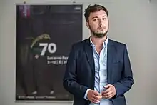 ![]() Octav Chelaru at Locarno Film Festival, before the premiere of "Black Clothes" | |