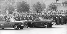 - Leonid Brezhnev, General Secretary of the Communist Party of the Soviet Union, attended the East German Republic Day Parade of 1974, a military parade on Karl-Marx-Allee in East Berlin, commemorating the 25th anniversary of the establishment of East Germany. The United States, Great Britain and France, which did not recognize the right of East Germany to have soldiers in East Berlin, condemned the parade.[49]