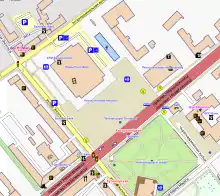 October Square (Russian: Октябрьская площадь; Belarusian: Кастрычніцкая плошча) is a square in the center of Minsk, Belarus, which is located between Independence Avenue, Engels streets and International Street. To its east side there are areas limited to buildings of the Palace of Culture of Trade Unions, the Museum of the Great Patriotic War and the Minsk Palace of Republic. Around the Square is the Central House of Officers, the residence of the President of Belarus, and the Janka Kupała National Academic Theater. On the square there are the main metro stations in Minsk: Kastryčnickaja and Kupawaŭskaja.[1]