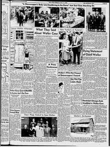 He was executed by electric chair on the morning of July 2, 1942. At the time of his execution, Waller had been on death row for 630 days, then the longest death row stay in the state's history.[43] His funeral was held on July 5 and was attended by 2,500 people. Only one white person, WDL Secretary Morris Milgram, attended. Other whites had been asked not to come; a reporter wrote of the exclusion that "[the black community] did not want 'Odell Waller's murderers' to look on his face in death".[44]