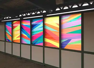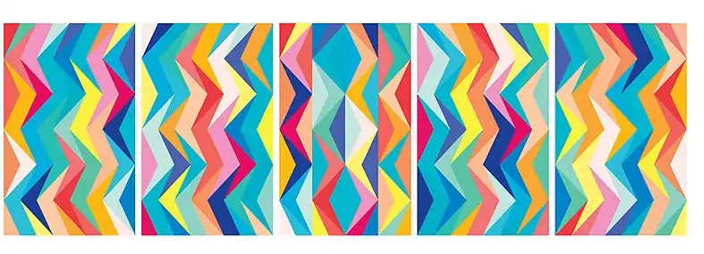 Odili Donald Odita // ⓘ (born 18 February 1966) is a Nigerian American abstract painter who lives and works in Philadelphia, Pennsylvania.[1] His work explores color both in the figurative historical context and in the sociopolitical sense. His vibrant large-scale abstractions have been described as "showstoppers"[2] and are considered to raise questions about race and society.[3] Most of Odita's work is inspired by the vibrant textiles of his home country, Nigeria, mixed with patterns from Western modernity.