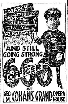 - ↑ "'OFFICER 666' FARCE OF MANY SURPRISES; New Play at the Gaiety Has Lots of Humorous Situations and Bright Dialogue. MISTAKEN IDENTITY PLOT George Nash as Burglar Who Poses as Artist and Wallace Eddinger as Bogus Policeman Score. (Published 1912)". The New York Times. Archived from the original on 26 July 2018.