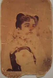 On May 29, 1890, while playing at the Globe Theater in Columbus, Ohio with the Boston Comic Opera Company, she told a reporter of The Columbus Dispatch that she had been "on the stage more or less for the past fifteen years. She was the leading lady with George C. Milne, the preacher-actor, a few years since, and late with Grace Hawthorn. She made her first appearance on the stage at the Boston Globe Theater, in a minor part. She first appeared in this city at the old Comstock, now Metropolitan Opera House, about seven years ago with Palmer in the "Danites." She appeared later with the Bennett A. Moulton Opera Company, at the Grand, four years ago. ... Mrs. Booth-Henderson has many of the characteristic features so marked in the Booth family and her facial resemblance, as well as her love for the stage, would seem to be strong evidence of the statement she makes. She states that she has a diary containing much important memoranda of her father's life and papers of his, and that at some time not far distant she will make them public."[5]