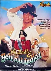 Oh Darling Yeh Hai India (transl.Oh darling, this is India) is a 1995 Indian musical parody film directed by Ketan Mehta, starring Shah Rukh Khan, Deepa Sahi, Jaaved Jaffrey and Amrish Puri. It also stars Anupam Kher in a supporting role.