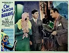 Oh, Sailor, Behave! is a 1930 American pre-Code musical comedy film produced and released by Warner Brothers, and based on the play See Naples and Die, written by Elmer Rice.[1] The film was originally intended to be entirely in Technicolor and was advertised as such in movie trade journals. Due to the backlash against musicals, it was apparently released in black-and-white only.
