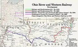 ![]() Ohio River and Western Railroad ultimate development and construction phases.[1] | |