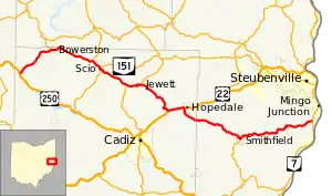 State Route 151 travels through Harrison and Jefferson Counties. Only the segment of SR 151 that is concurrent with US 22 near Hopedale is included within the National Highway System.[2]
