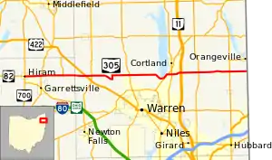 - 1 2 Ohio Department of Transportation. "Technical Services Straight Line Diagrams: SR 305, Trumbull County" (PDF). Archived from the original (PDF) on 2012-03-25. Retrieved 2006-12-20.