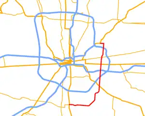 The route leaves Groveport heading north, still passing through industrial properties, with some commercial properties. The highway enters Columbus city limits and has an interchange with US 33. After US 33, the highway becomes a four-lane undivided roadway, passing through residential properties. The highway leaves Columbus and reenters the city, before passing under Interstate 270 (I–270). After passing under I–270, SR 317 passes the Eastland Mall, on the west side of the road. The road continues north passes through commercial properties, having an interchange with I–70. SR 317 continues north and enters Whitehall. The route passes through residential properties, before passing through commercial properties. The highway has an intersections with both US 40 and SR 16 in Whitehall.[4][5][6] The road leaves Whitehall and reenters Columbus, by passing under Columbus and Ohio River Railroad tracks.[4][7][8]