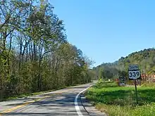 SR 339 was established in 1933. It was initially a spur route that ran along its present alignment from its northern terminus at SR 821, at the time a part of US 21, southwesterly to approximately its southern intersection with County Road 75 (CR 75) in southern Noble County.[2][3] This would only be temporary, as in 1935 the highway was extended southwesterly to a new southern terminus at its eastern junction with SR 60, then designated as SR 77, in Beverly.[5][6]