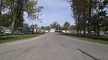 SR 365 begins at a T-intersection with the concurrency of SR 235 and SR 366 about one mile (1.6 km) north of Lakeview. The highway travels amidst a neighborhood of cottages as it heads east, with side streets radiating from it. After several jaunts, SR 365 proceeds south. The highway then arrives at its endpoint at a parking lot for a boat launch serving Indian Lake State Park on the west side of Indian Lake. A small driveway at SR 365's terminus leads back to SR 235/366.[8] Due to the lack of reassurance markers on SR 365, there are no markers marking the end of the route.[9]
