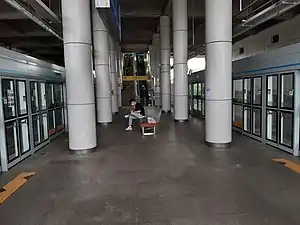 - ↑ However, some trains stop at the second platform, turn around, and arrive.