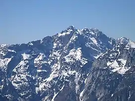 Ojstrica (2,350 meters or 7,710 feet) is a mountain in the eastern part of the Kamnik Alps with a pyramid-shaped top that is visible from far away. The name Ojstrica derives from the Slovene word oster 'sharp'. There is a 600-meter (2,000 ft) high wall on its northern side to the bottom of the Logar Valley. The eastern side, down to the Roban Cirque (Slovene: Robanov kot), also has a high wall. There are several climbing routes.