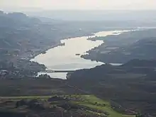 The Okanagan Country, also known as the Okanagan Valley, is a region located in the Canadian province of British Columbia and the U.S. state of Washington (where it is spelled the Okanogan Country), defined by the basin of Okanagan Lake and the Okanagan River. With an estimated 400,000 residents, the Okanagan Country spans from the Thompson Plateau near Grindrod, British Columbia in the Okanagan to the Okanagan Highland near Douglas County, Washington in the Okanogan. The largest city in the Canadian portion is Kelowna, with a metropolitan population of 222,162 residents as of 2021, while the largest city in the American portion is Omak, with 4,860 residents as of 2020. The region took its current name in honor of the Okanagan term, ukʷnaqín. The mild climate and close proximity to lakes, rivers and mountainous regions make the Okanagan Country an outdoor recreational destination. The region's economy is dominated by the primary sector industries of agriculture and forestry, although economic diversification has also occurred with retirement communities and recreational tourism. The American portion is considered to be more remote than the Canadian division, with approximately 10 percent of the population.