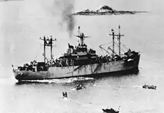 - 16 ammunition ships: Akutan, Firedrake, Lassen, Mauna Loa, Shasta, Vesuvius, Wrangell, Canada Victory,[lower-alpha 14] Bedford Victory, Bucyrus Victory, Manderson Victory, Las Vegas Victory, Logan Victory,[lower-alpha 14] Greenburg Victory, Pierre Victory, Hobbs Victory[lower-alpha 14]