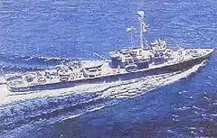- ↑ Scuttled 4 April following severe damage from kamikaze on 2 April