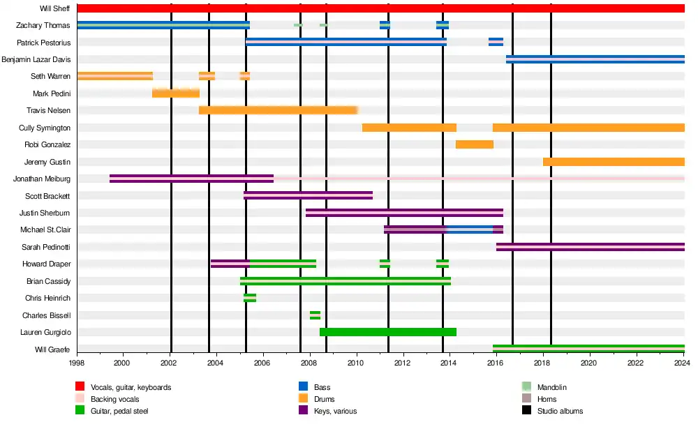 They met Jonathan Meiburg at a gig with his band Whu Gnu at the Waterloo Brewing Company on December 3, 1999. Meiburg subsequently joined the band on accordion and later on pianos and organs.