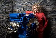 ![]() Oksana Mas is posing with her artwork from "Heart Transplant" series | |