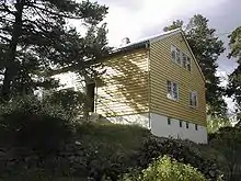 Selvaag gained his reputation as an innovator in the austere post-war years, when he wrote an open letter (with drawings) to the Norwegian parliament (with copies to twelve leading newspapers) severely criticizing residential regulations and codes for their inefficiency, and claiming that three times as many residences could be built with the same amount of materials and effort. Challenged to prove his point, he built a test home in the Ekeberg section of Oslo, the so-called Ekeberg House (Ekeberghuset) and first exhibited it on September 3, 1948.[1][6][7]