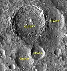 - ↑ "Olcott (crater)". Gazetteer of Planetary Nomenclature. USGS Astrogeology Research Program.