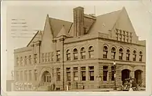 The city hall of Cadillac, Michigan was shown on a postcard mailed in May 1924.