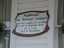 The Old Lafayette County Courthouse, built 1893–1894, is an historic former courthouse building located on State Road 51 at 136 Fletcher Avenue, North, corner of Bloxham Street in Mayo, Florida, It was Lafayette County's second courthouse, the first at New Troy having burned down New Year's Eve 1892. It was built on the courthouse square in Mayo but was moved across the street to make way for a fireproof building, the present Lafayette County Courthouse. A two-story verandah was added on 3 sides after it was moved. In 1989, the Old Lafayette County Courthouse was listed in A Guide to Florida's Historic Architecture, published by the University of Florida Press.[1][2] Today it is an inn called the Chateau.[3]