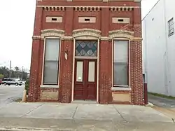 The Old Merchants and Farmers Bank Building, also known as the Old Public Library, is a historic bank building located at Emporia, Virginia. It was built in 1902, and is a one-story, eclectic, red and yellow brick structure with a concave mansard roof. The front facade features a galvanized sheet-metal cornice that may have been manufactured by H. T. Klugel. The bank occupied the building until 1914, after which it housed the public library until 1977.[3] It is currently occupied by the Greensville-Emporia Historical Museum.