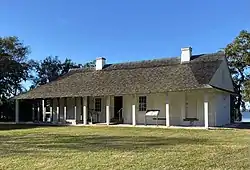 The LaPointe-Krebs House, also known as the "Old Spanish Fort" and "Old French Fort," was built on the shore of Lake Catahoula (Krebs Lake) near what is now Pascagoula, Mississippi, on land granted to the French Canadian Joseph Simon dit La Pointe.[3] Construction of the house is tentatively believed to have begun circa 1757 based on dendrochronology of structural timbers in the earliest portion of the structure, making it Mississippi's oldest extant historic building and the only French colonial-era structure in the state. It is the oldest scientifically confirmed standing structure on the Gulf Coast of the United States, although the Old Ursuline Convent in New Orleans is known to have been designed by Ignace François Broutin in 1745 and completed by 1753. The LaPointe-Krebs House was added to the National Register of Historic Places in 1971 and was designated a Mississippi Landmark in 1984. The LaPointe-Krebs House is owned and operated by the LaPointe-Krebs Foundation as a museum.
