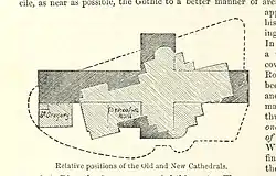 This "New Work" was completed in 1314, although the additions had been consecrated in 1300.[12] Excavations in 1878 by Francis Penrose showed the enlarged cathedral was 586 feet (179 m) long (excluding the porch later added by Inigo Jones) and 100 feet (30 m) wide (290 feet (88 m) across the transepts and crossing).[13]