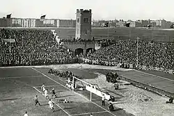 The stadium was completed in 1914. For some time it was the only stadium with brick stands in the country. Prior to the construction of the Olympic Stadium used for the 1928 Summer Olympics, it was the primary stadium used for the city until the 1928 Games. This was to the fact that the stadium could not handle track running and track cycling events though it could accommodate football games, seating 29,000.