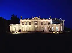 The gallery on the first floor is a reproduction of the Hall of Mirrors at Versailles, and it is floored in parquet.[3] The gallery leads into the ballroom, which contains walls of gilt panelling and mirrors. Above the fireplace, there is an oil painting of Louis de Bourbon dating from 1717.[3]