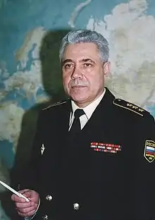 Oleg Aleksandrovich Yerofeyev (Russian: Олег Александрович Ерофеев; 10 July 1940 – 24 December 2022[1]) was an officer of the Soviet and Russian Navies, who reached the rank of admiral, and commanded the Northern Fleet from 1992 to 1999.