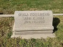 In 1910, Ernst Kohlberg was shot by an angry tenant.[4] Olga Kohlberg died in El Paso after a short illness on August 12, 1935.[14] She was buried in the Mt. Sinai Cemetery in Concordia Cemetery.[15]