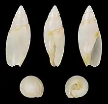 Olivella fulgurata is a species of small sea snail, marine gastropod mollusk in the subfamily Olivellinae, in the family Olividae, the olives. Species in the genus Olivella are commonly called dwarf olives.[2]