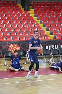![]() Oliver Dvojakovski warming up as player of KK Naviko Akademija FMP in the 2021-22 season | |