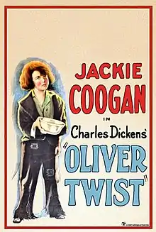 Oliver Twist is a 1922 American silent drama film adaptation of Charles Dickens' 1838 novel Oliver Twist, featuring Lon Chaney as Fagin and Jackie Coogan as Oliver Twist. The film was directed by Frank Lloyd. It was selected as one of the best pictures of 1922 by New York Times, Chicago Tribune and the Los Angeles Times. Walter J. Israel handled the costuming. Studio interiors were filmed at the Robert Brunton Studios in Hollywood. The film's tagline was "8 Great Reels that make you ask for more. Will Hays says Jackie Coogan Films are the sort the World needs."[2] A still exists showing Fagin training his wards to be pickpockets.[3]