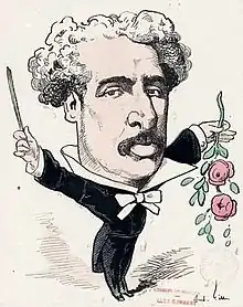 From 1855 he conducted the orchestra of the Bal Mabille. During this period he acquired great popularity thanks to waltzes such as Le Tour du Monde, la Valse des Roses, Gambrinus, and La Nuit La sérénade. From 1872 to 1877, he conducted the bals of the Opéra-Comique, the orchestra of the Folies Bergère[1] for which he composed several ballets, including Les Volontaires. From 1874 to 1876, he directed the bals of the Théâtre de la Monnaie in Brussels[1] and, finally, the bals de l'Opéra de Paris[1] along with Johann Strauss II. In 1879, he gave the ballet Yedda, on a choreography by Mérante, premiered 17 January 1879. In 1885, he established at Palais Vivienne the "soirées Metra" which consisted of promenade concerts, dances and parties on Wednesday and Saturday evenings. In 1888, he created at the Théâtre des Bouffes-Parisiens his operetta Le Mariage avant la lettre on a libretto by Adolphe Jaime and Georges Duval. In addition to his waltzes and operettas, Métra made numerous arrangements of other operettas by composers such as Jacques Offenbach, Émile Tédesco, Louis Ganne, Robert Planquette, Charles Lecocq, Edmond Audran and Léon Vasseur. Some of his compositions are used as film music in, among others, Ciboulette, by Claude Autant-Lara (1930) and Sentimental Destinies by Olivier Assayas (2000).
