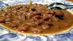 Olla podrida (/ˌɒlə pˈdrdə, - pəˈ-/,[1] also UK: /- pɒˈ-/,[2] US: /ˌɔɪə pəˈ-/,[3] Spanish: [ˈoʎa poˈðɾiða]; literally "rotten pot", although podrida is probably a version of the original word poderida, so it could be translated as "powerful pot") is a Spanish stew, usually made with chickpeas or beans, and assorted meats like pork, beef, bacon, partridge, chicken, ham and sausage, and vegetables such as carrots, leeks, cabbage, potatoes and onions.[4][5]